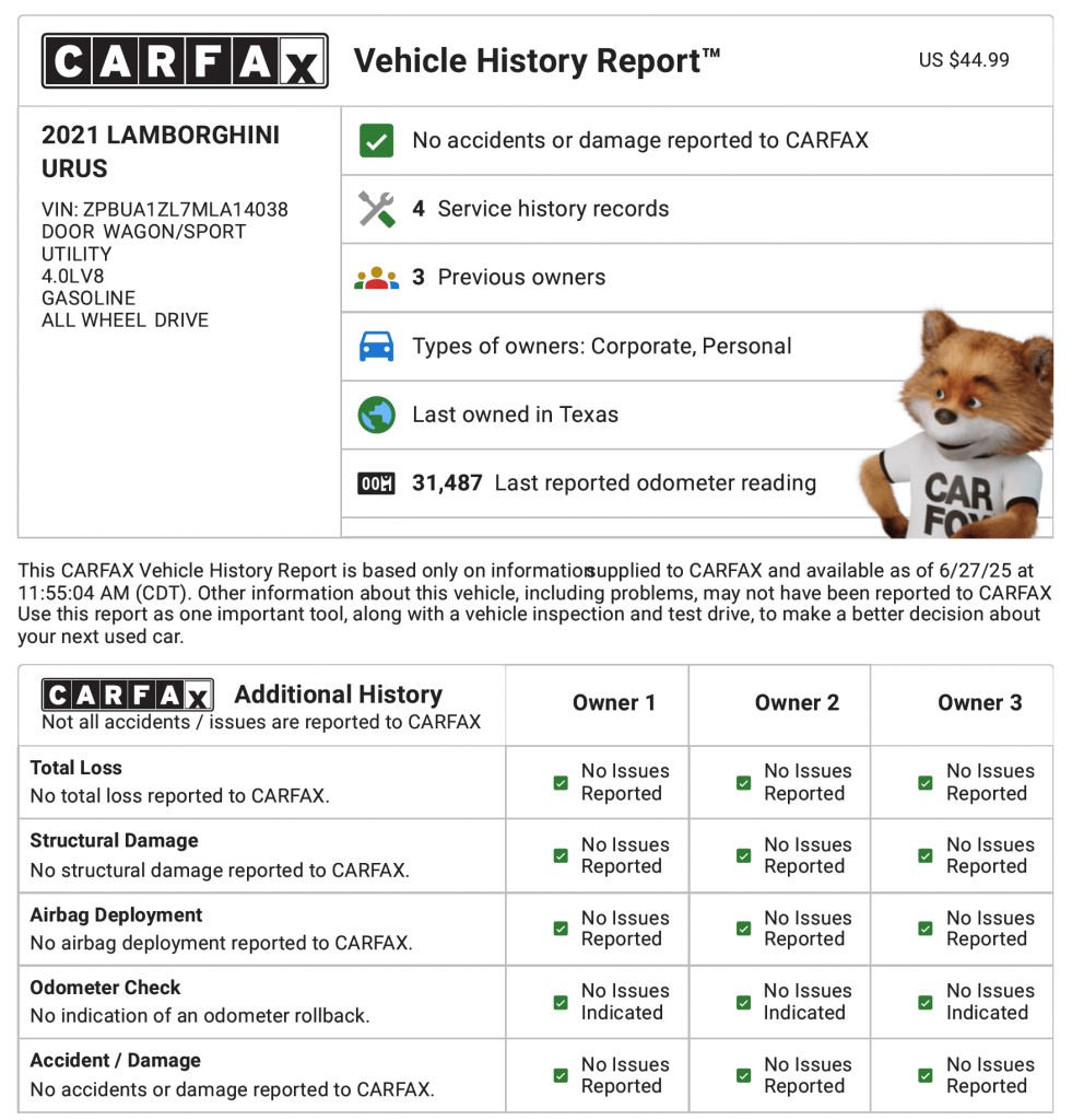 Step inside the 2021 Urus and you’re greeted by a cockpit that blends Italian luxury with fighter jet inspiration. The cabin features premium leather, Alcantara, carbon fiber, and aluminum accents, all crafted with Lamborghini’s signature attention to detail. The customizable TFT digital display, drive mode selector (ANIMA system), and dual-touchscreen infotainment system put full control at your fingertips. With room for five passengers and a spacious cargo area, the Urus offers everyday usability without sacrificing the brand’s legendary performance DNA. It’s more than just a high-performance SUV—it’s a statement of power, prestige, and unparalleled driving excitement. If you've ever dreamed of owning a Lamborghini that can do it all, the Urus is your reality waiting to happen.