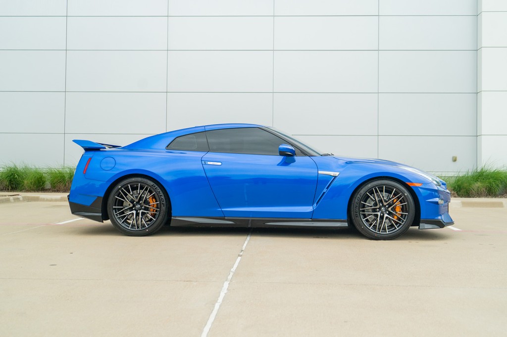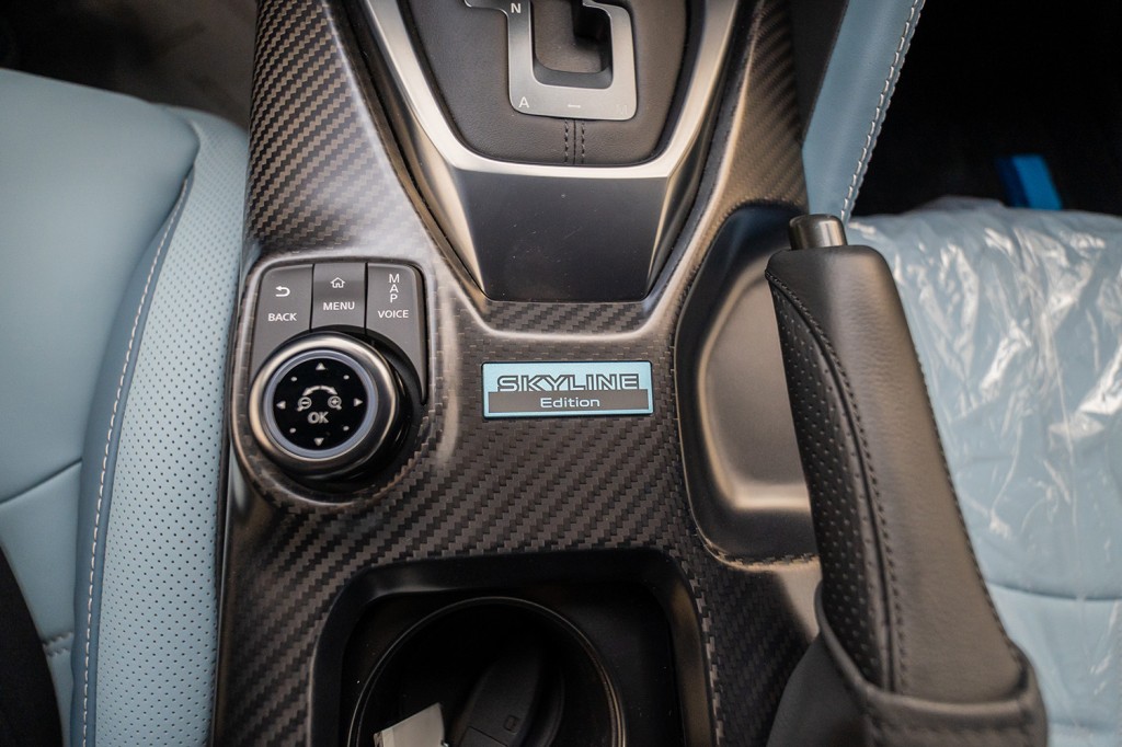 Under the hood, the Skyline Edition retains the formidable performance of the GT-R Premium trim, featuring a 3.8-liter twin-turbocharged V6 engine that delivers 565 horsepower and 467 lb-ft of torque. This power is managed by a 6-speed dual-clutch transmission and Nissan's advanced ATTESA E-TS all-wheel-drive system, ensuring exceptional handling and acceleration. The combination of performance and exclusive design elements makes the Skyline Edition a standout in the GT-R lineup.