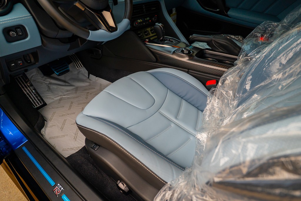 The 2024 Nissan GT-R Skyline Edition is a tribute to the GT-R's storied heritage, bringing the iconic Skyline name to the U.S. market. Finished in the legendary Bayside Blue paint—originally made famous by the R34 Skyline GT-R—this limited-edition model exudes nostalgia and performance pedigree. Complementing the exterior is a Sora Blue interior, creating a harmonious blue-on-blue aesthetic that pays homage to the GT-R's roots.