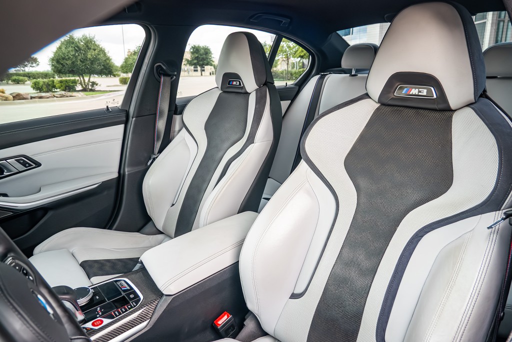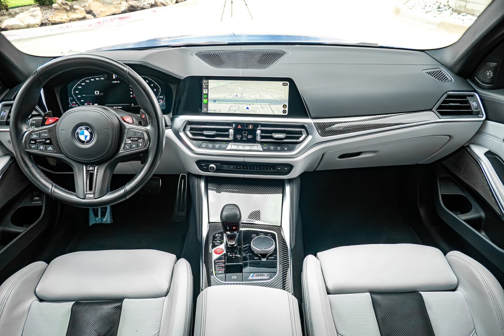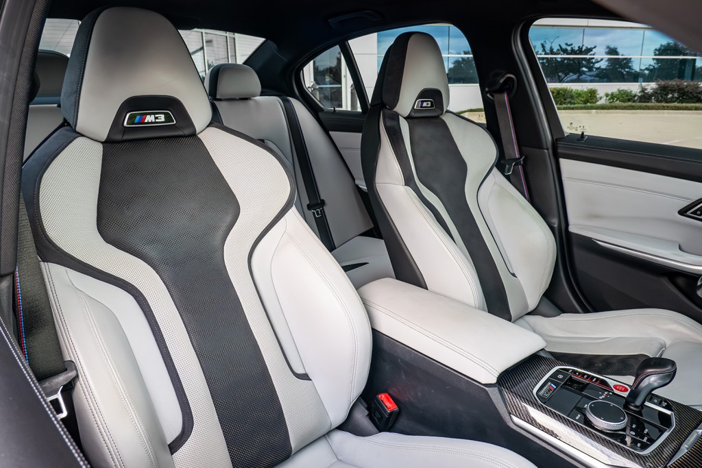 Step inside and you’ll find a driver-focused cockpit that feels like it was built to fuel adrenaline. Optional carbon bucket seats, premium Merino leather, and M-specific digital displays a racing-inspired atmosphere without sacrificing daily comfort. The aggressive stance, flared fenders, and quad exhausts announce its presence before the engine even roars to life, while modern tech like wireless Apple CarPlay, adaptive cruise control, and a premium Harman Kardon sound system make every drive as connected as it is exhilarating. The 2022 BMW M3 xDrive is more than just performance—it’s a machine engineered to thrill in every season, every condition, and every mile.