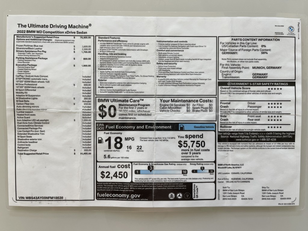 Original MSRP $91,495 (Monroney label shown below)