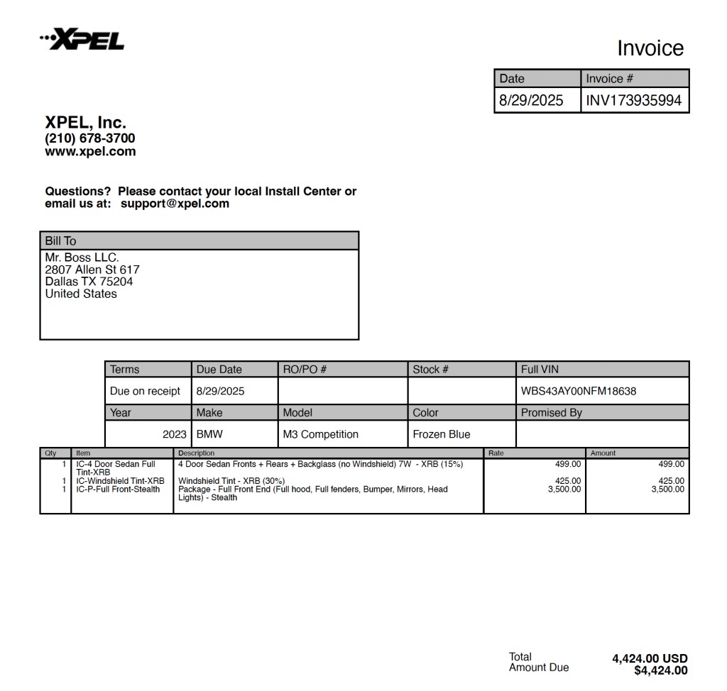 - XPEL paint protection film