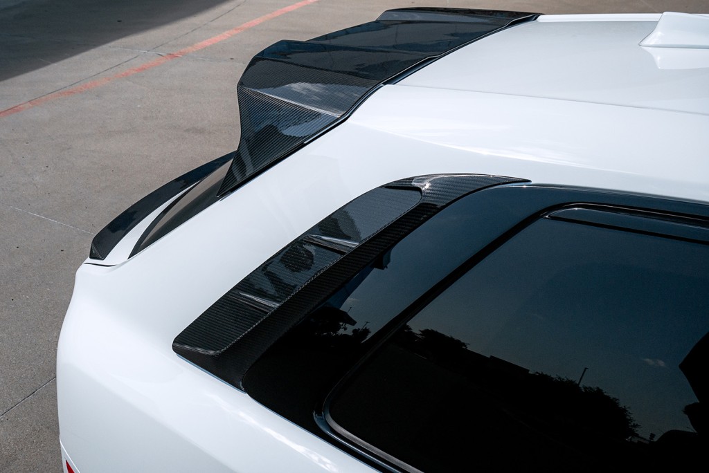 Custom front bumper, rear bumper, carbon fiber diffuser, carbon fiber rear wing, wide body fenders w inlets, carbon fiber hood, carbon fiber door moldings, carbon fiber door handles. carbon fiber s, custom foot pedals and interior accents.